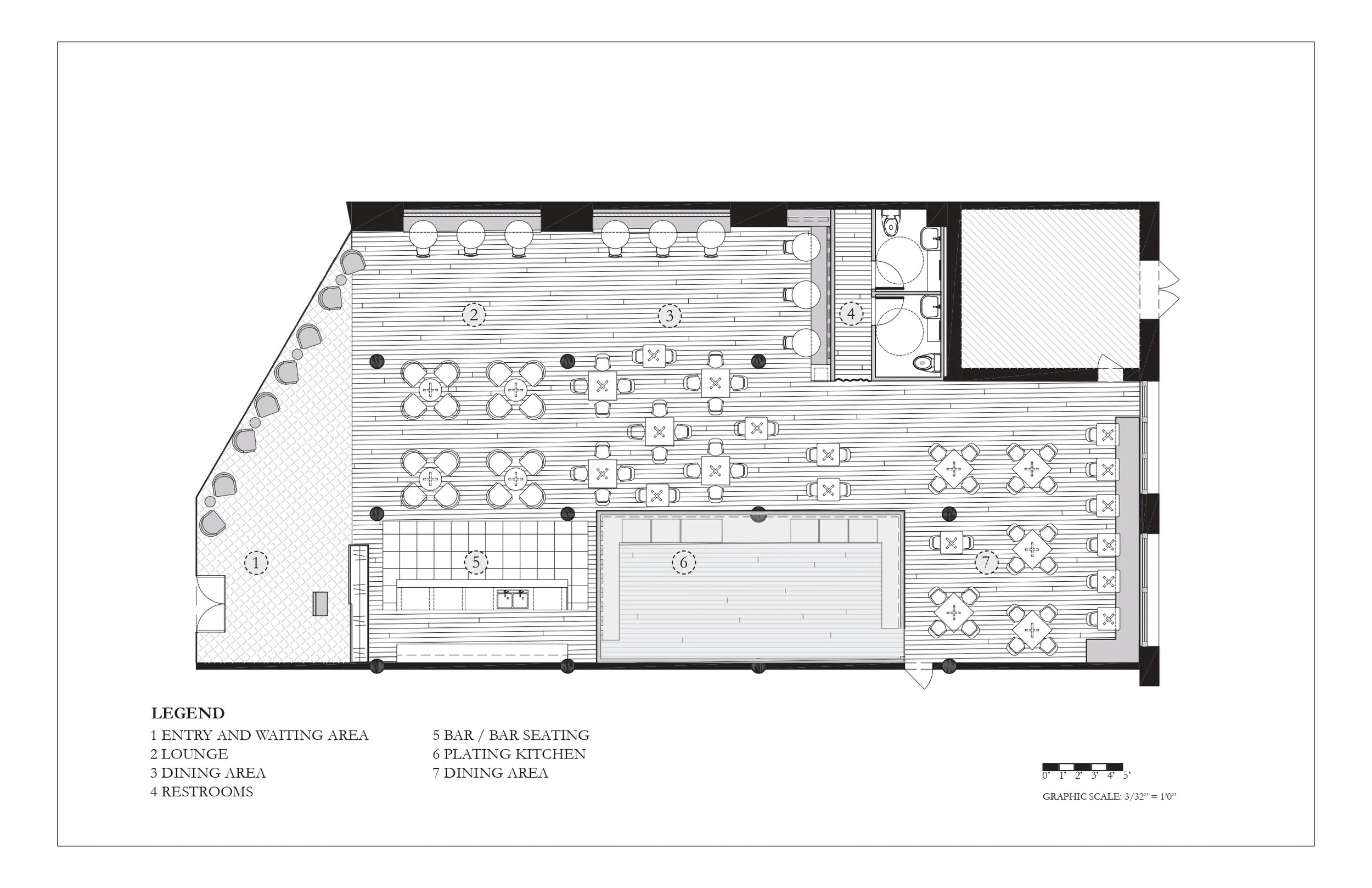 This is the floor plan for the restaurant project also featured on this site, the result of several space planning iterations at the beginning of the project. AutoCAD OMBRA FLOOR PLAN