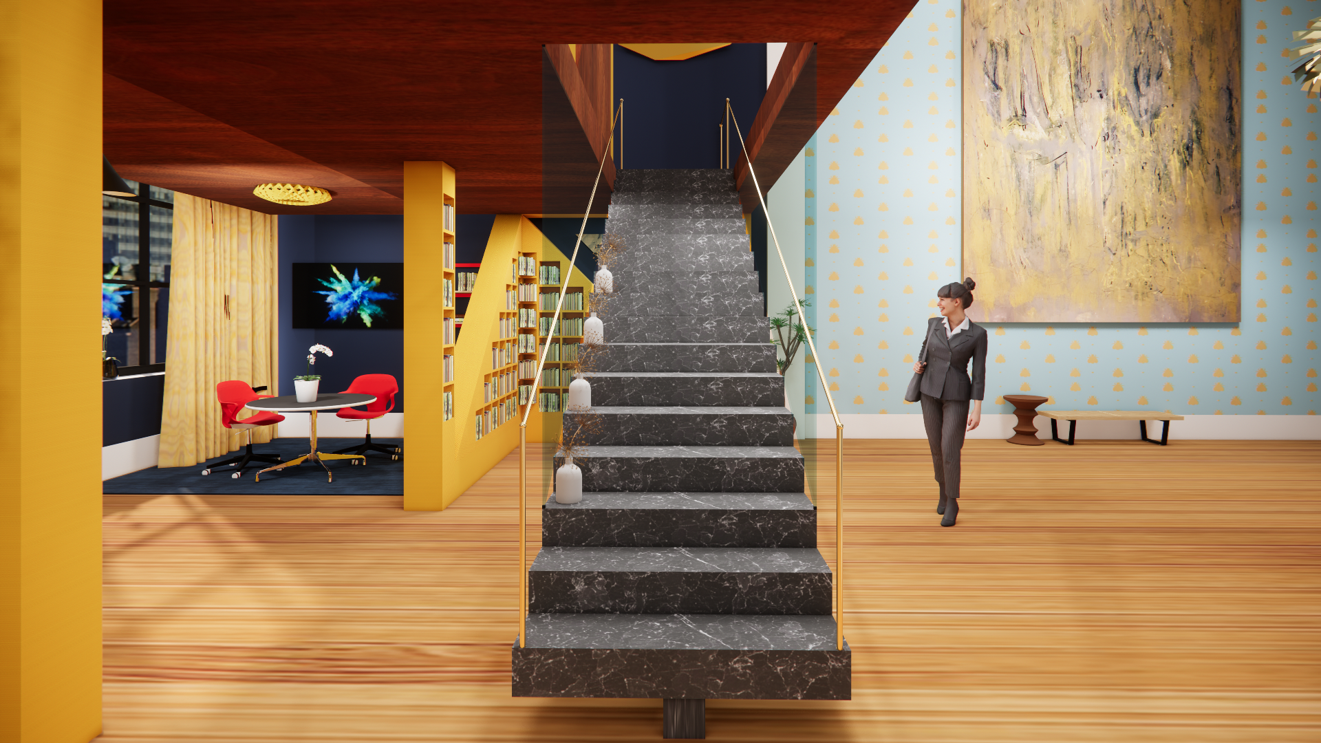 STAIRS UP TO WRITING AREA