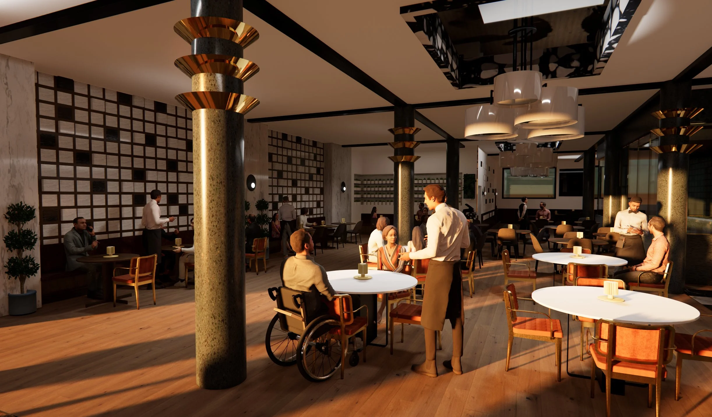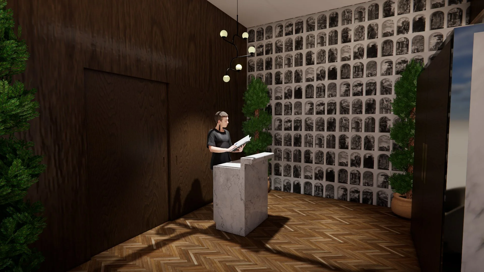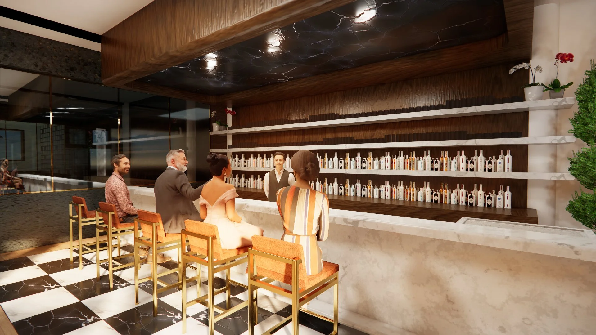 The host stands at a sculptural marble post, grounded and still: you were expected. The first moment is one of shedding—of weather, of noise, of rush. During meals, an ombra—referred to in the restaurant as Un Rito—is served between primi and secondi: a palate-cleansing drink, alcoholic or not. It’s a moment of reset, of marking time. Guests don’t flow through the space; they move into rhythm with it. And here, everything is made by hand—pasta, brodo, the smallest garnish—because for Funke, food is sustenance as gesture, tradition held in the present tense. It is care made visible. Materials are tactile and imperfect: scratched marble, hand-carved wood, patinated brass. Tables are left bare of linen. Every detail is curated, but never precious. Restrained material choices favor Italian modernism: stone, wood, and time-worn surfaces. Scale, light, and stillness do the work. Leaving ombra feels like a transition, not a conclusion. It is a gesture that trusts the interior work has been done.