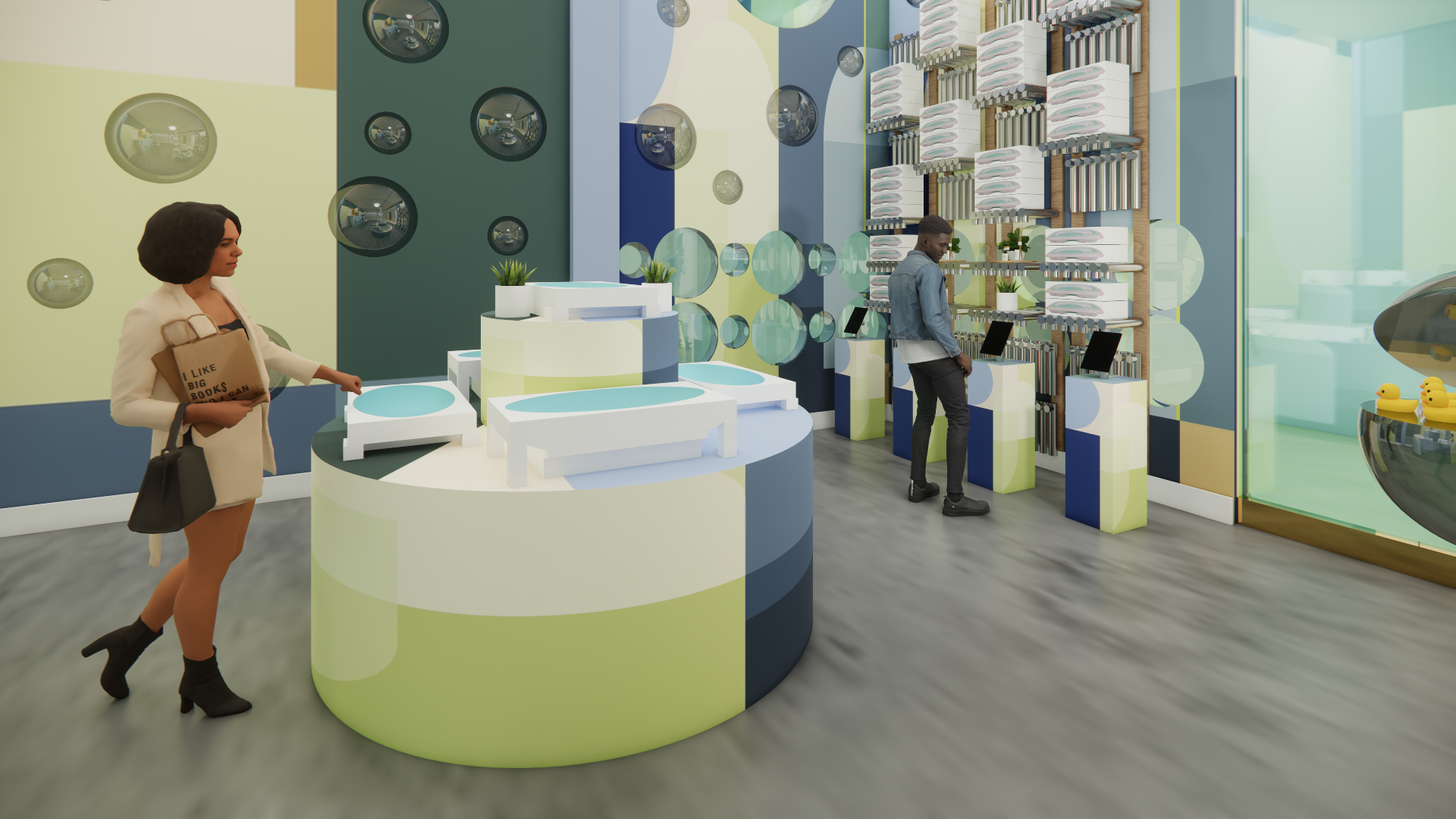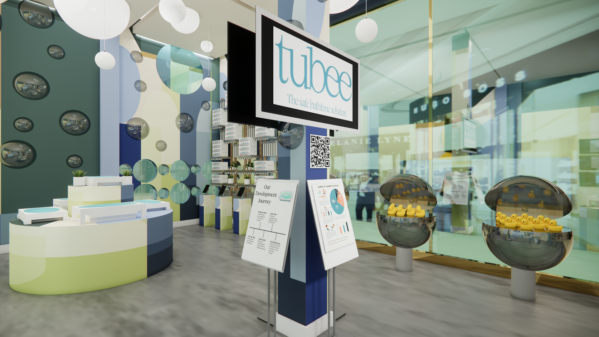 Bright chroma activates the eye and heart while interacting with Tubee and brand ambassadors, inspiring confidence in the brand's safety, durability, and environmental aspirations. Visitors feel empowered to make a more sustainable choice for their child’s bathing needs through the availability of relevant, informative, and visually enticing information. Form a connection to the brand by being invited to interact with the product in a variety of modalities including visual and interactive experiences. Leave feeling the power of providing care for your child, yourself, and the environment.